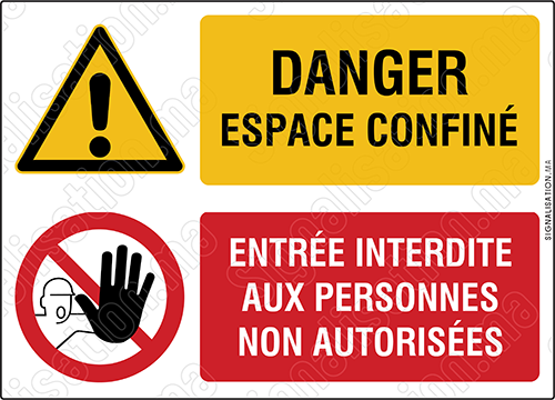 Plaque combinée – Danger espace confiné – entrée interdite aux personnes non autorisées