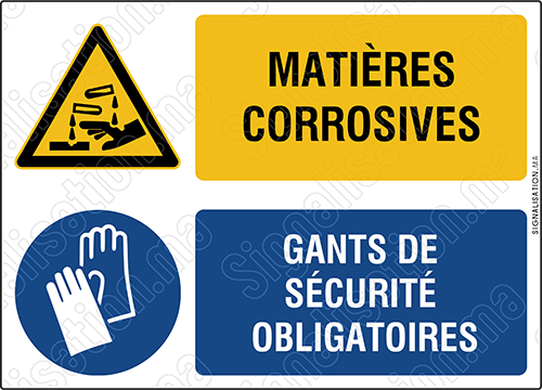 Plaque combinée – Matières corrosives – Gants de sécurité obligatoires
