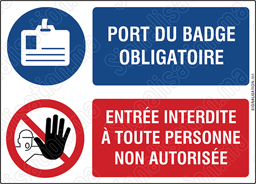 Plaque combinée – Port du badge obligatoire, entrée interdite à toute personne non autorisée