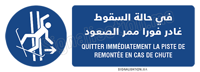 - Assurez la bonne sécurité de vos employés en leur indiquant de quitter immédiatement la piste de remontée en cas de chute à l'aide de ce pictogramme
