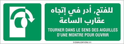 Plaque tourner dans le sens des aiguilles d’une montre pour ouvrir للفتح أدر في إتجاه عقارب الساعة format horizontal